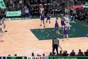 苦苦支撑!字母哥强攻布朗尼 杀到内线上篮得手