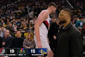 申京读秒出手欲造约基奇犯规 两人双双后倒 美媒:两个人疯狂假摔